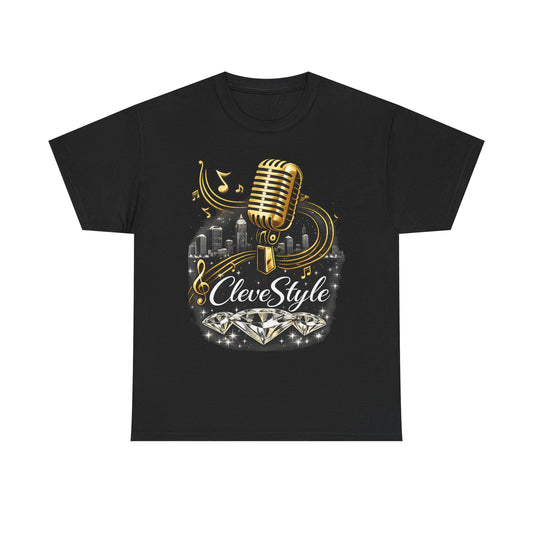 Microphone Music Tee — "CleveStyle" Vintage Gold Mic Music T‑Shirt