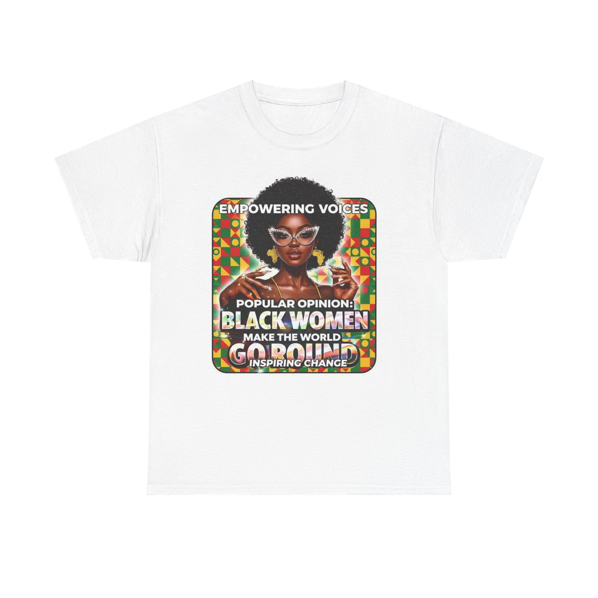 T-Shirt — "Empowering Voices: Popular Opinion — Black Women Make the World Go Round" Retro Afrocentric Design